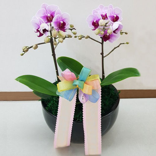 관리방법: 꽃이 피어 있을 때는 가급적 실내온도를 18도 이상(최저 15도) 유지하는 것이 좋습니다. 온도가 낮으면 꽃봉오리가 노랗게 되어 떨어져 버리기 때문입니다. 겨울부터 봄은 호접란의 개화기로써 식재(바크)가 항상 젖어 있는 상태가 되면 뿌리가 썩어버리기 때문에 관수에 주의해야 합니다. 개화된 호접란은 생장이 휴지기에 들어가 있고 또한 저온이기 때문에 물을 적게 주는 것이 중요합니다. 즉 잎에 분무한다는 기분으로 물을 주는 것이 좋습니다. 직사광선보다는 30%정도로 차광하는 것이 무난합니다. 너무? 광선이 부족하면 꽃 달림이 나빠지니 주의하여야합니다.