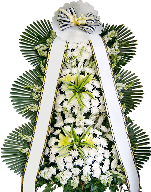 국화대국(황,백)을 사용하여 상가나 추도용으로 만든상품입니다. 도시루잎이나 몬스테리아 등 그린소재를 사용하고 계절에 따라 극락조, 백합, 글라디오라스 등으로 포인트를 주기도 합니다.